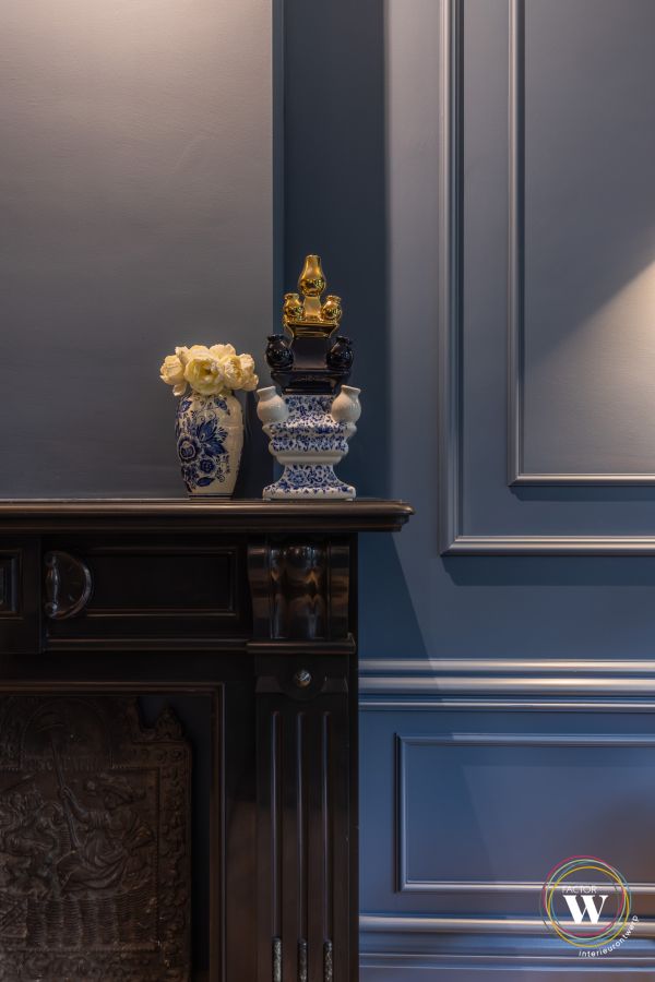 Op de Bel-etage brachten we in de voorkamer bewust de chique stijl van weleer opnieuw tot leven, zij het met een moderne twist. Hier heerst een sfeer die teruggrijpt naar het verleden die naadloos samenvloeien met eigentijdse elementen. Naarmate je verder richting de achterkant van de woning beweegt, transformeert de stijl geleidelijk naar strakker en moderner, zonder daarbij de warme en uitnodigende sfeer uit het oog te verliezen.