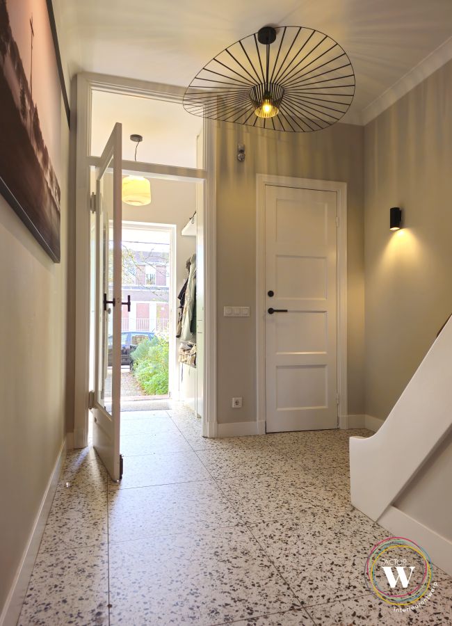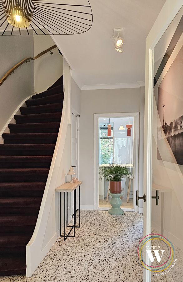 Tim en Marjolein wonen met hun drie kinderen in een gezellige jaren 30 woning in Nijmegen. Zij vroegen Factor-W om hen te helpen een mooi interieurplan te maken voor de beneden verdieping. Met name de woonkamer, keuken en bijkeuken pasten niet meer bij de leefwijze van het jonge gezin met opgroeiende kinderen. De indeling was niet praktisch en alles kon wel een upgrade gebruiken. De wens om een grote leefkeuken te realiseren is door Factor-W meegenomen in het interieurontwerp. Op basis van de Feng Shui analyse hebben we bekeken hoe we het interieur konden vormgeven zodat het zowel esthetisch als praktisch voldeed aan al hun wensen.
