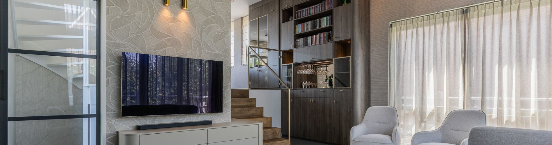 Je hebt mooie ontwerpen afgeleverd en ons ook echt geholpen met het creëren van een nieuw interieur. Je hebt/kent ook zeer bekwame vakmensen die het ontwerp vervolgens kunnen realiseren (maatwerk voor de kasten, trap en schilder). Je hebt er zeker oog voor om verschillende ruimtes in ons huis op een mooie manier op elkaar af te stemmen qua kleur, materiaal etc. De door jouw ontworpen maatwerkkasten en de trap zijn heel erg mooi geworden en passen echt perfect in het interieur. Er is heel veel opbergruimte gecreëerd en door de kast is er nu ook een mooie verbinding van de woonkamer met de keuken.